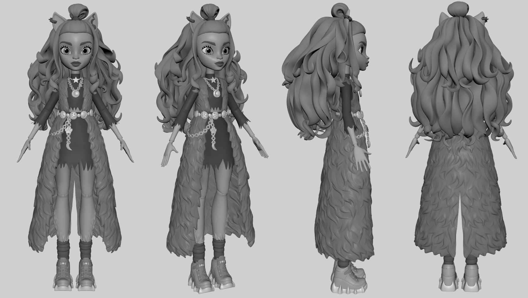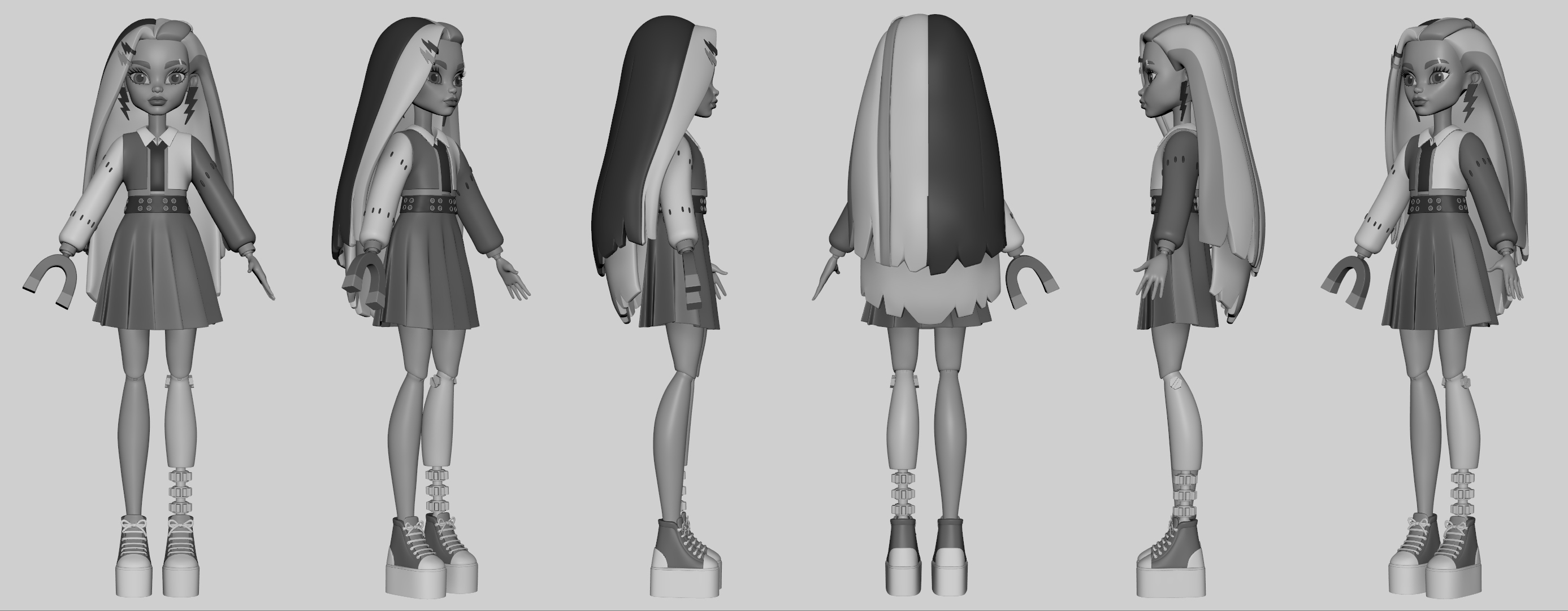 As Modeling Supervisor on multiple Monster High music videos at Mindshow, I led the character modeling team from early production through final delivery, including hands-on work on the show’s main characters alongside my modeling leads. I was responsible for maintaining model quality, consistency, and performance while ensuring all assets met the visual style and technical requirements of the Monster High brand.